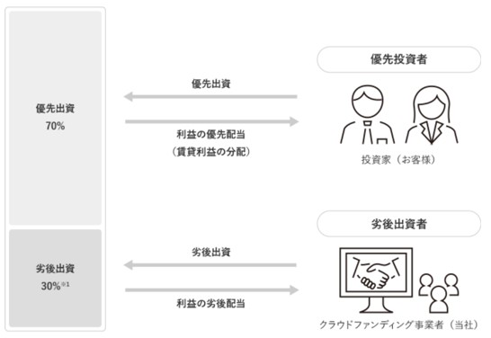 私たち投資家を優先出資者、運営会社(リズムキャピタル)を劣後出資者とし、1つのファンドに共同で出資する仕組みのこと🫶