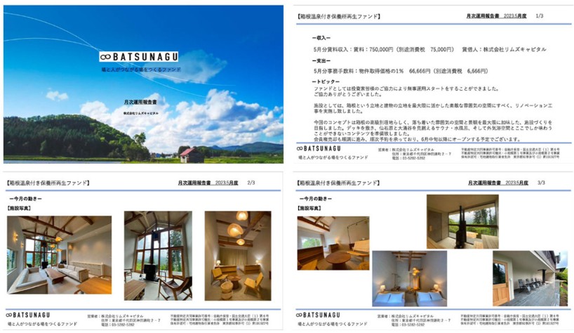 実際に、投資したファンドの進捗や物件の状況は、毎月1回の月次運用報告書でしっかり公開されている👇