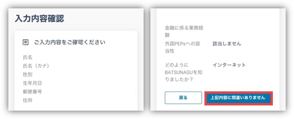 間違いがないか確認したら「上記内容に間違いありません」をタップ🥰
