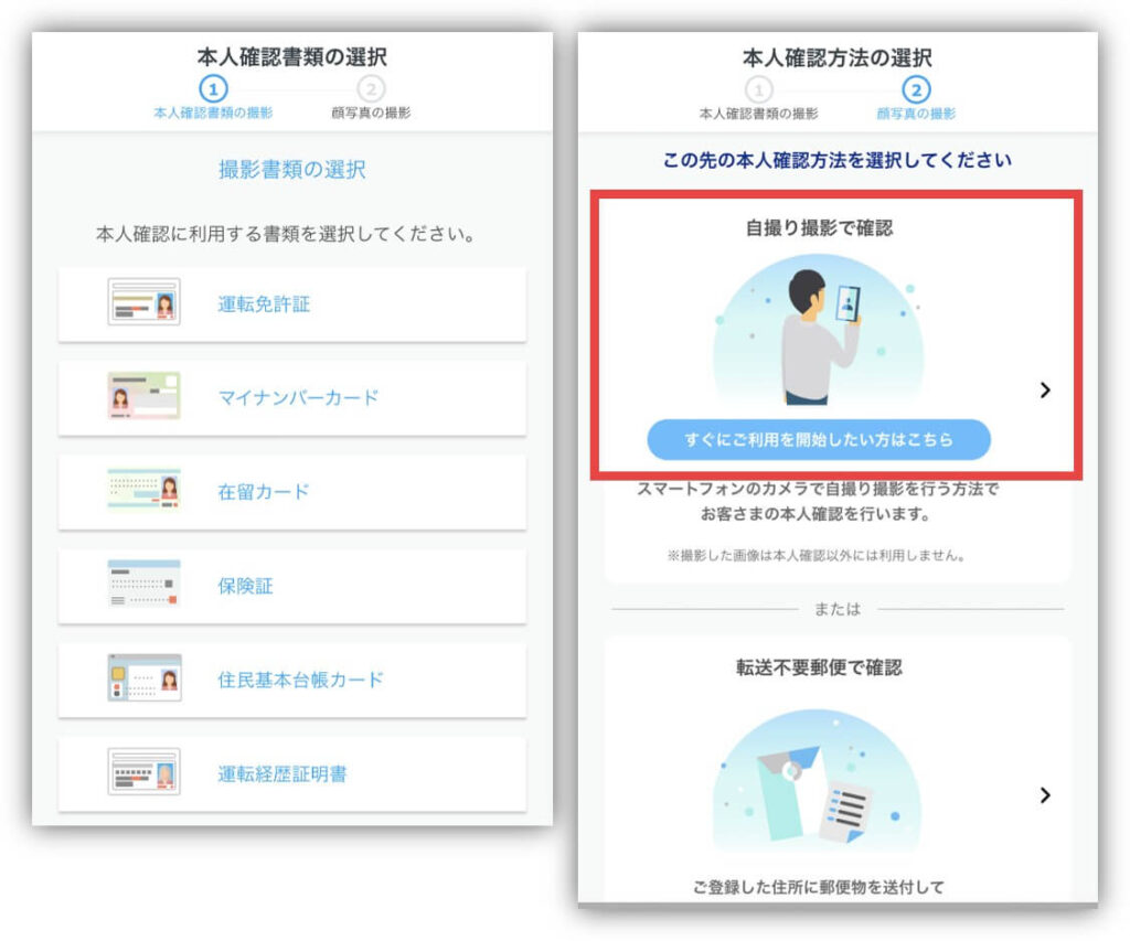 「自撮り撮影で確認」が審査が早くてオススメ✨