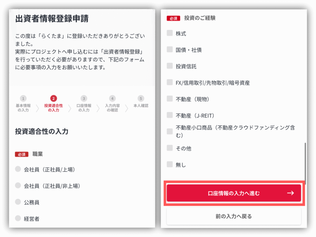 ここからは、出資者情報登録申請をするために必要項目を入力していくよ!