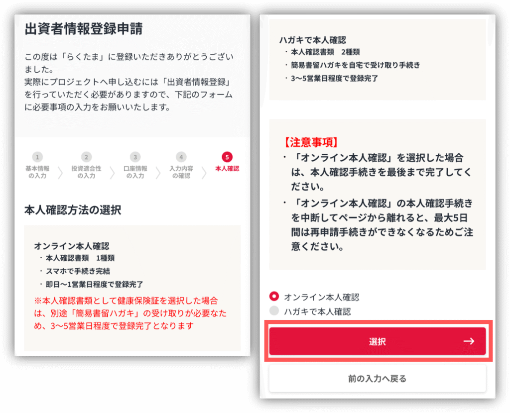 オンライン本人確認の方が、すぐに登録が終わるからオススメかな!