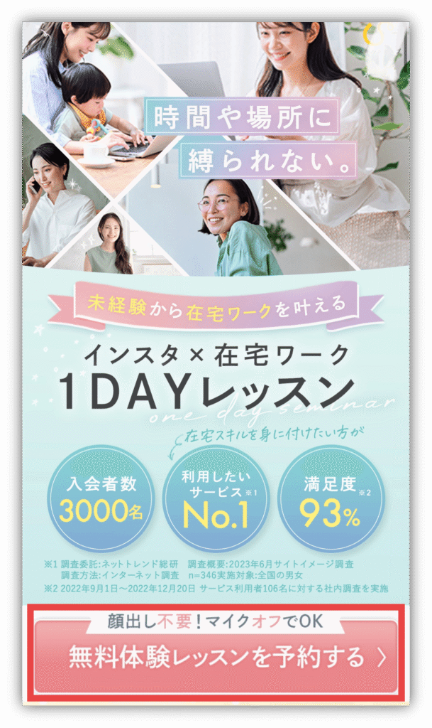 どんな働き方があるのか、スキル0の自分にもできるのか不安だったけど、無料体験を受けて「自分でもできそう!」と思えたよ💕