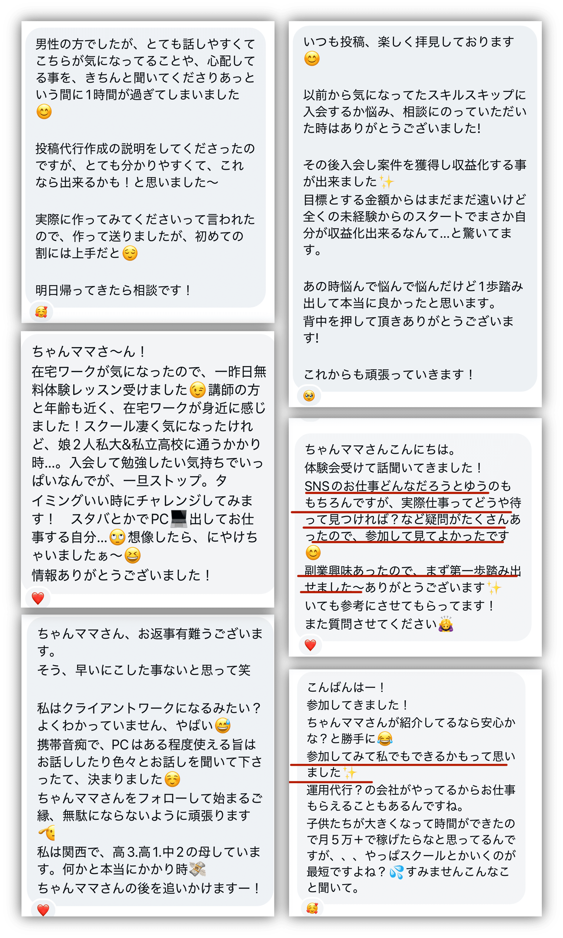 ここでは、実際にスキルスキップの無料体験を受けたフォロワーさんの口コミを紹介するね。