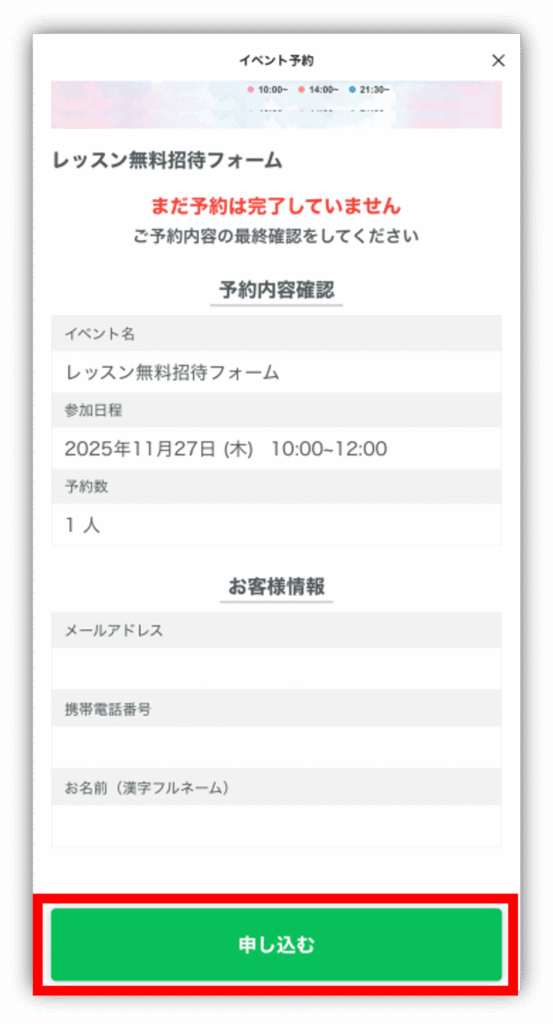 イベント予約の画面になったら「予約にすすむ」をタップしてね💕