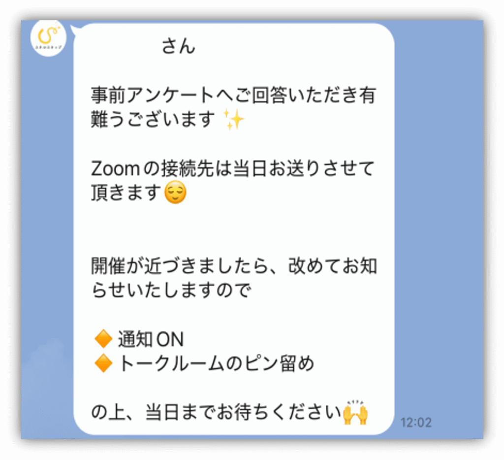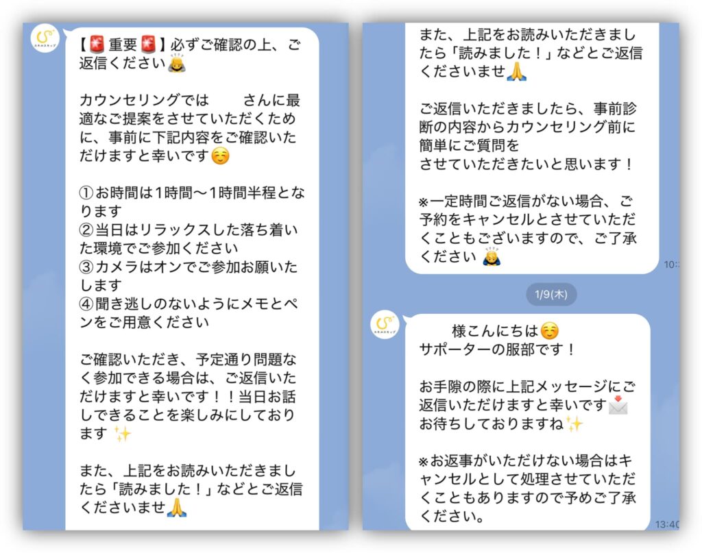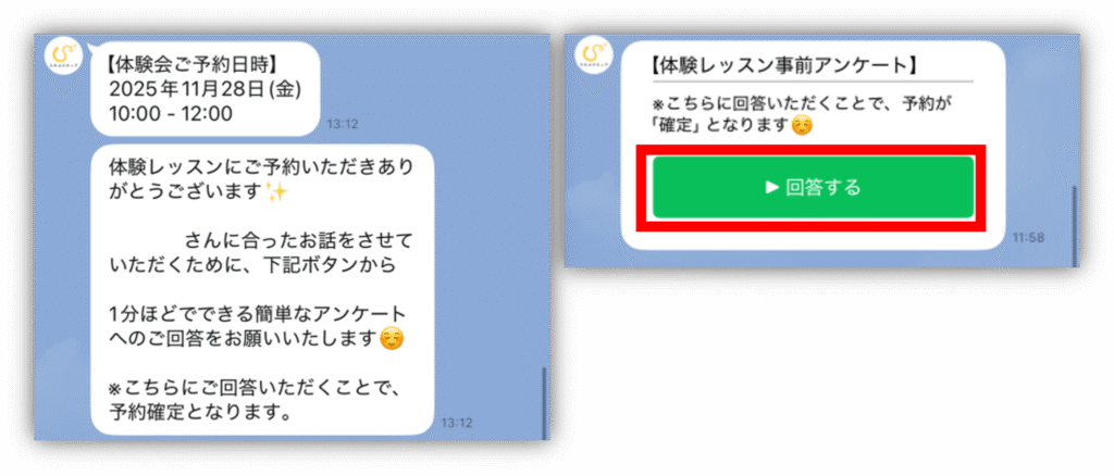 また後日、無料体験に関する確認事項のメッセージが送られてくるよ。