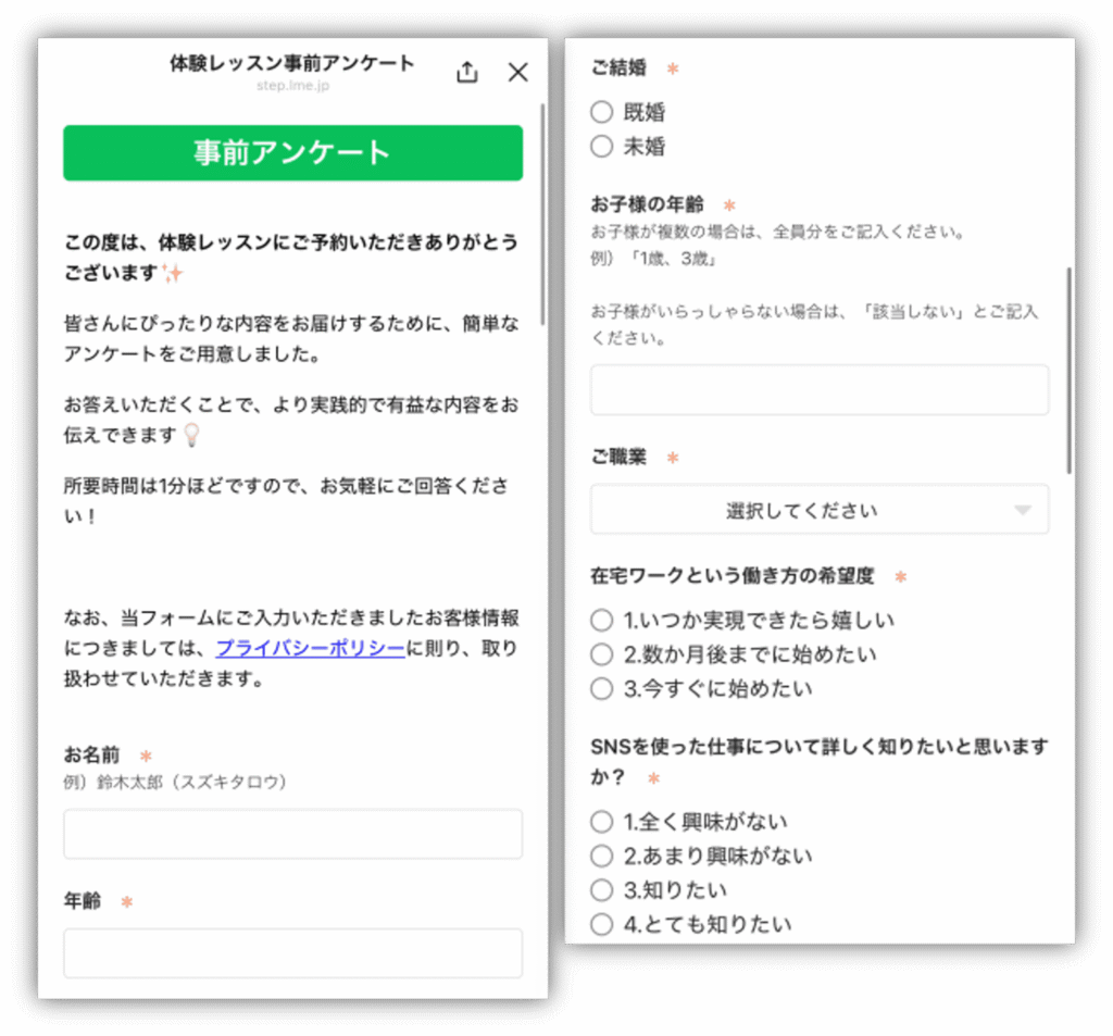 お名前や職業といった基本情報や、在宅ワークの希望度などの質問に答えていってね。