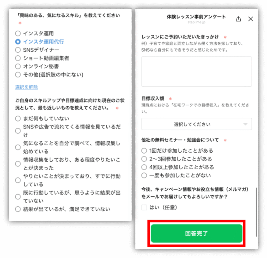 問題なく送信できていたら、スキルスキップから回答完了のメッセージが届く💕