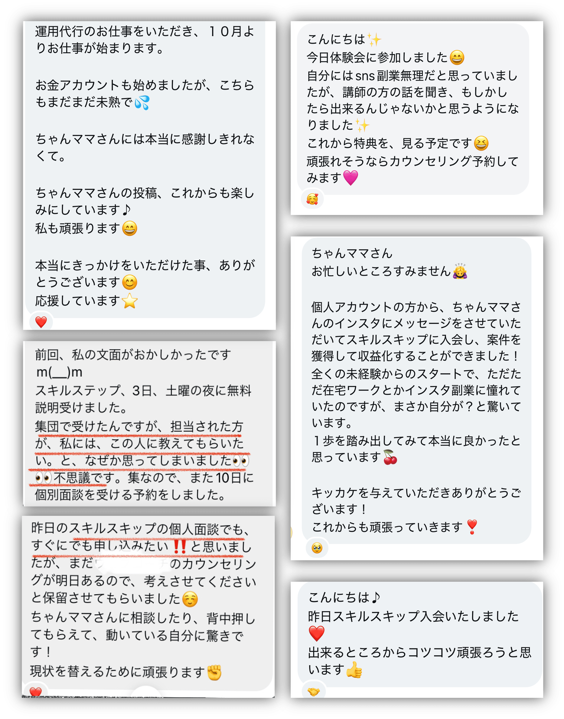 実際に、未経験からスキルスキップで学んで、SNSを仕事にできるようになったフォロワーさんもたくさんいる。