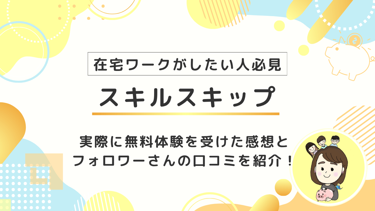 今日は、スキルスキップで実際に無料体験を受けた感想やフォロワーさんからの口コミを詳しく紹介したよ。