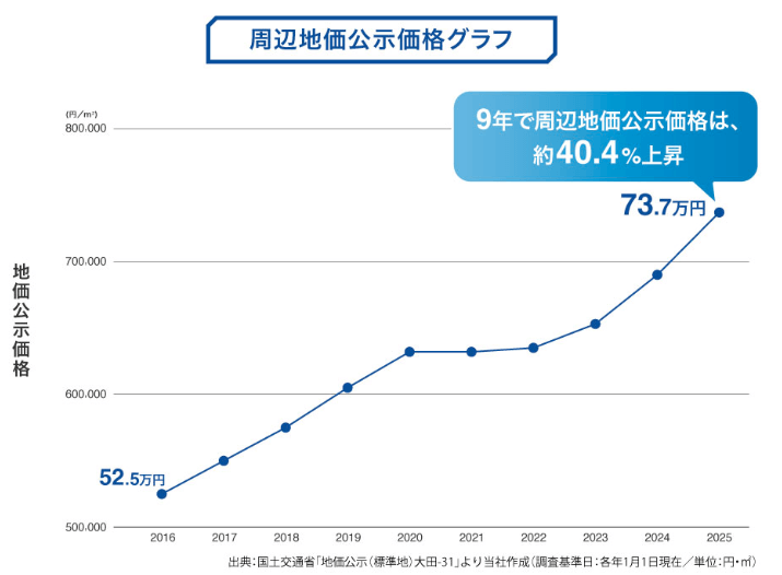 実際に周辺の地価は9年間で約40%も上昇しているほど、ブランド力がある!
