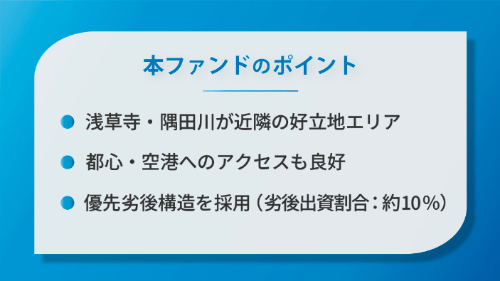 このファンドは、東京都台東区浅草3丁目にある、69.81㎡の土地と建物が投資対象!