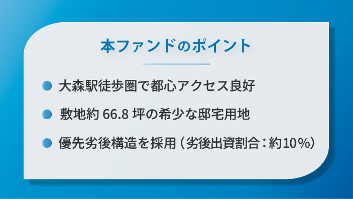 このファンドは、大田区山王2丁目にある計220.91㎡の土地が投資対象!