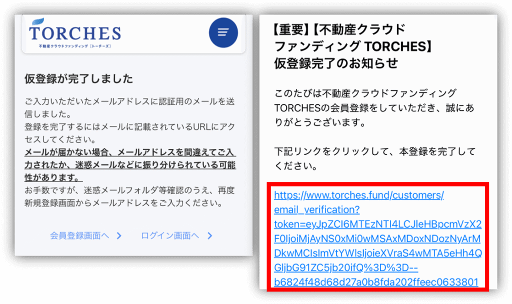 先ほど入力したメールアドレスに「仮登録完了のお知らせ」が届くから、メール内に記載のリンクをタップしてね☺️