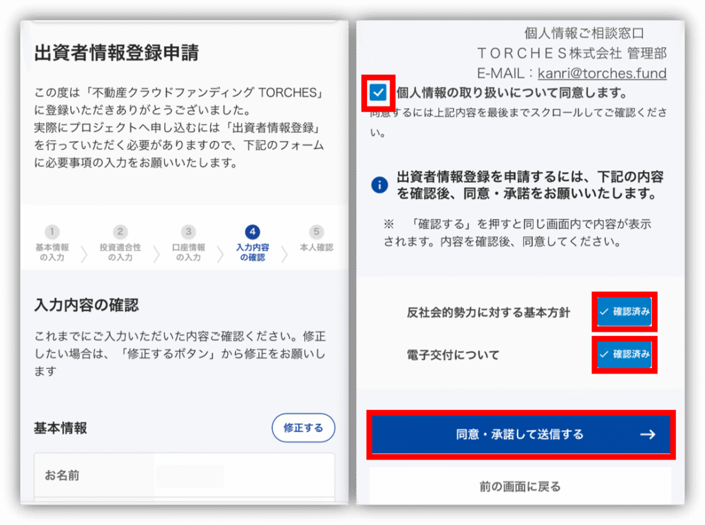 問題がなければ、最後に2つの書類を確認し「同意・承諾して送信する」をタップ💓