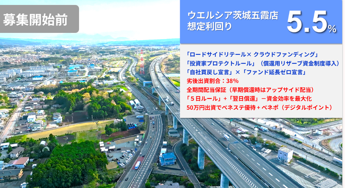 10月24日から、新しいファンド「らくたま30号(ウェルシア茨城五霞店)」の募集がスタート!